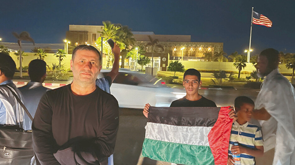 ABD Büyükelçiliği’nin önü Moritanyalıların 28 Mayıs’ta olduğu gibi sevinçlerini gösterdikleri ya da protesto gösterileri yaptıkları önemli bir nokta. Filistin davasının ‘milli dava’ olduğu ülkede İsrail’in Gazze’deki katliamlarına yönelik tepkinin adresi de burası. İsrail, 2014 yılında da Gazze’de katliam yaptığında ABD Büyükelçiliği’nin önündeki meydana büyükçe bir Kubbetü’s Sahra maketi yerleştirilmiş. Maket 9 yıldan fazladır orada duruyor. Kavşak “Kudüs Kavşağı”, cadde de “Kudüs Caddesi” olarak değiştirilmiş. İsrail’in 7 Ekim’deki Aksa Tufanı Operasyonu’ndan sonra başlayan vahşi saldırıları neredeyse her gün burada protesto ediliyor. Hafta sonu, akşamın ilerleyen saatlerinde ABD Büyükelçiliği’nin önüne gittiğimizde kaldırımda biriken Nuakşotlular, “İntikam, intikam” sloganları atıyordu.