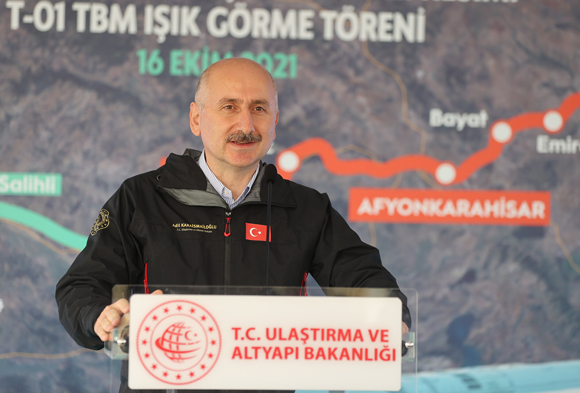 Ulaştırma ve Altyapı Bakanı Adil Karaismailoğlu, Ankara-İzmir Yüksek Hızlı Tren Projesi'nin Eşme-Salihli kesiminde yer alan ve Türkiye'nin TBM tekniğiyle yapılan en büyük çaplı tünelinin 206 gün gibi rekor bir sürede tamamlandığını belirtti. Karaismailoğlu "Buradaki T-1 tünelimiz, demiryolu ve güvenlik tünelinin tek kesitte iki katlı olarak inşa edildiği Türkiye'nin ilk tünelidir. Ayrıca Türkiye’de TBM tekniği ile yapılan en büyük çaplı tüneldir. Yani tünelimizin üst katında hızlı tren giderken alt katta ambulans ulaşımı da sağlanabilecek" ifadelerini kullandı.