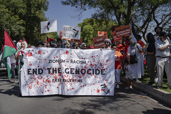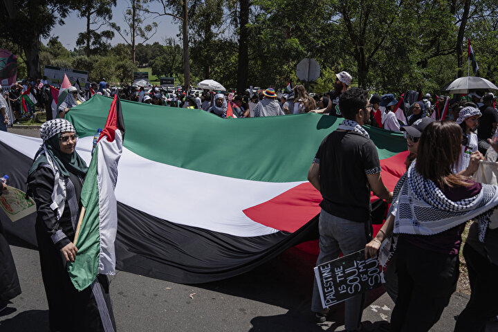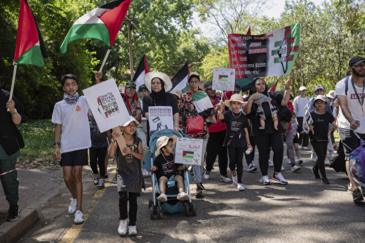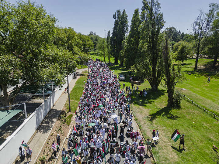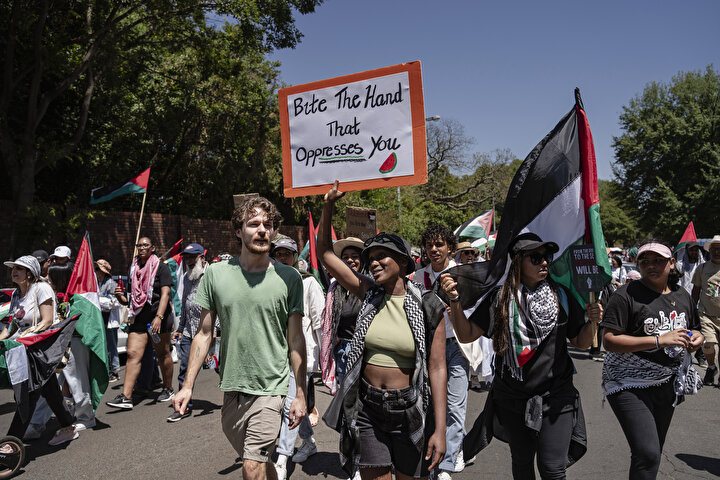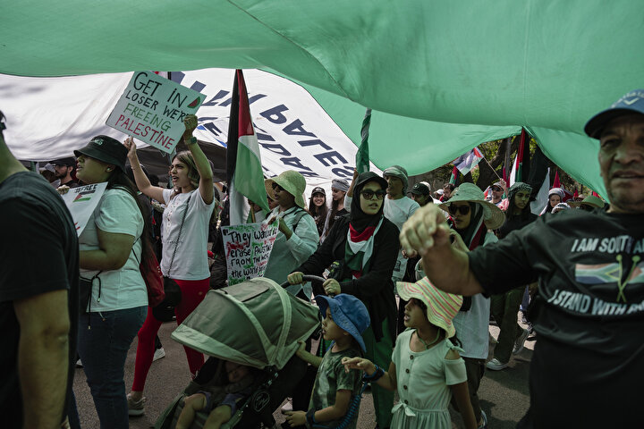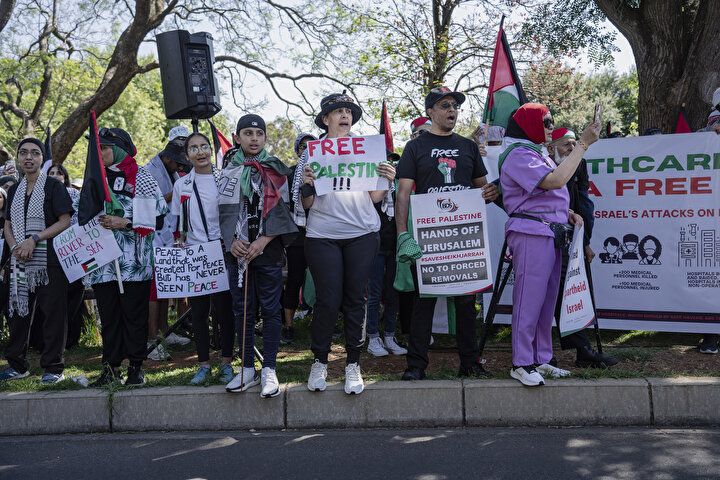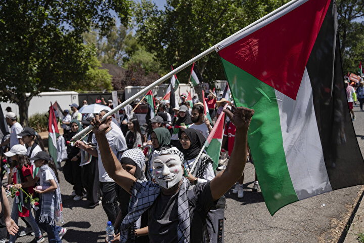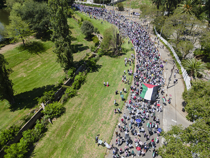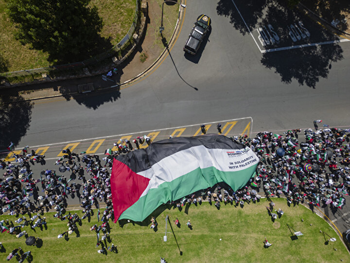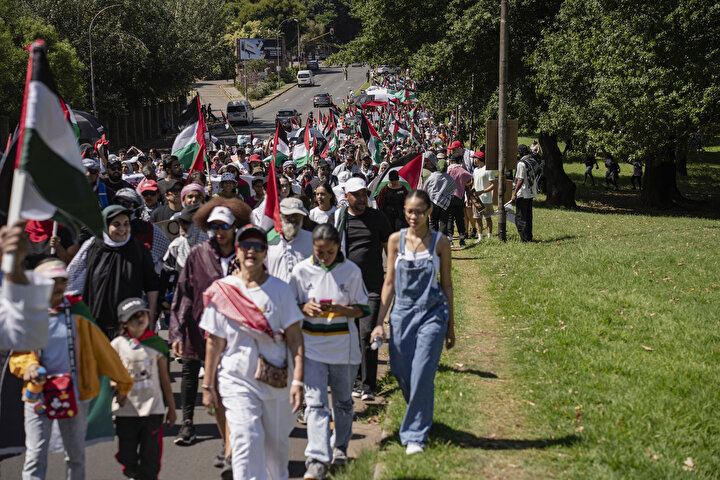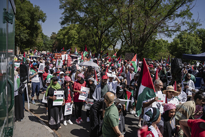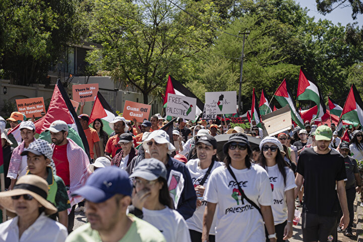 Güney Afrika'nın Johannesburg kentinde toplanan binlerce kişi, Filistin’e destek gösterisi düzenlendi.