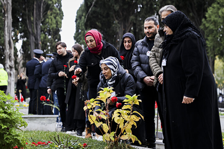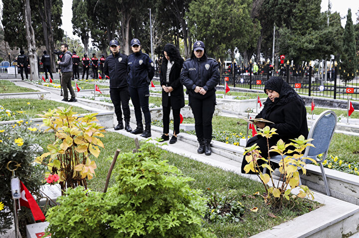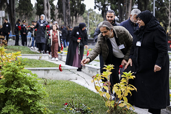 Kur'an-ı Kerim okunan ve dua edilen anma töreninde, şehitlerin mezarlarına karanfiller bırakıldı.