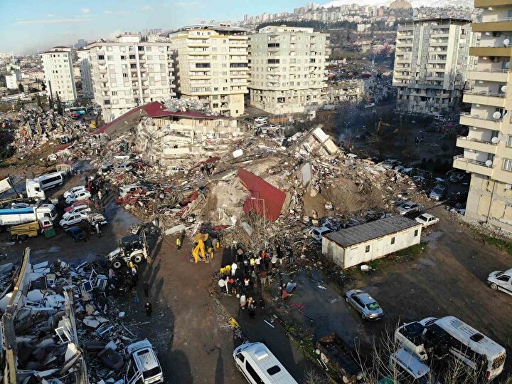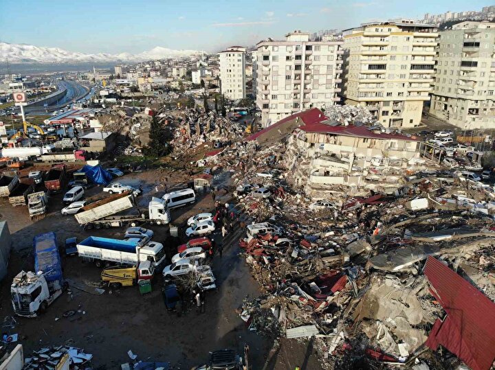 Kahramanmaraş merkezli 10 ili etkileyen 7,7 ve 7,6 büyüklüğündeki depremler nedeniyle Kahramanmaraş kent merkezinde yüzlerce bina yerle bir oldu. Bölgede arama kurtarma çalışmaları devam ederken havadan çekilen görüntü ise depremin büyüklüğünü bir kez daha gözler önüne serdi.