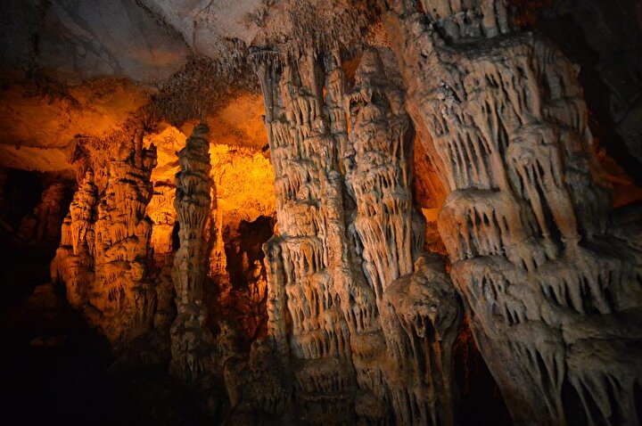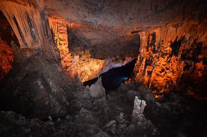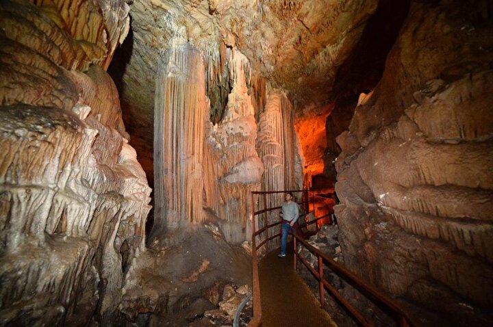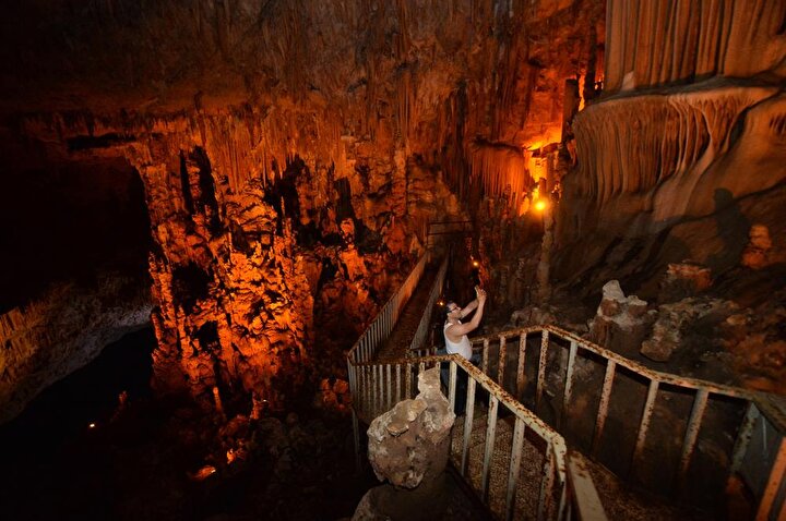Denizden 45 metre yüksek yamaçta olan, 555 metre yatay uzunluğa, 46 metre derinliğe sahip mağaradaki dev boyutlara ulaşan ve her biri görsel şölen sunan damla taşlar, ana galeriyi çok sayıda salon ve odaya ayırıyor.