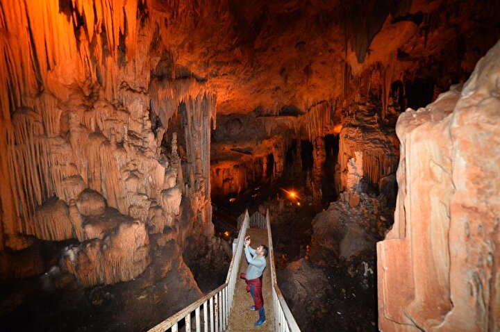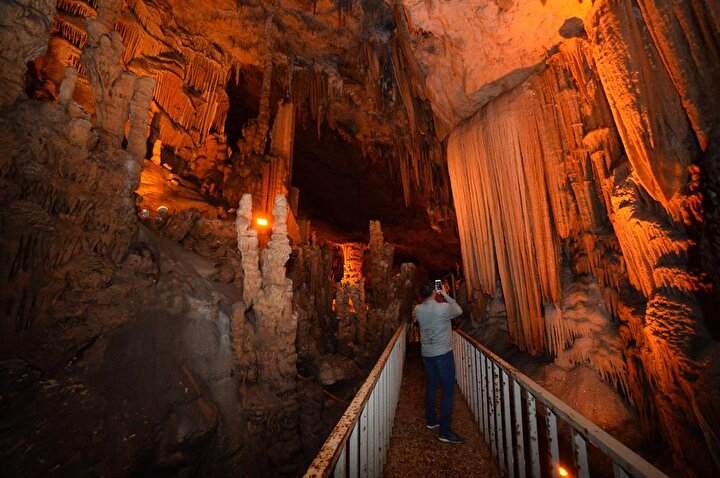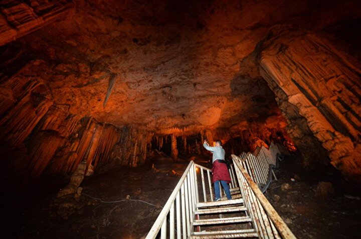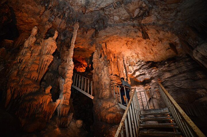 Mağaraya 560 basamak inerek giren ziyaretçiler, çok sayıda ilginç figürlü sarkıt, dikit ve sütunun yanı sıra mağara incisi, bayrak traverten ve duş başlığı gibi oluşumları inceleyebiliyor.
