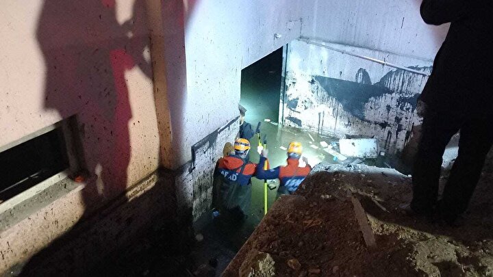 Olay yerine gelen 15 kişilik itfaiye ekibi 9 su tahliye motoru ve 5 itfaiye aracıyla 4 saatlik çalışmanın ardından içerideki suyu tahliye etti.