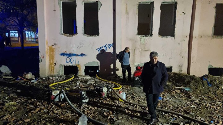 Polis, binanın etrafını güvenlik şeridiyle kapatırken, itfaiye ekipleri de bodrum kattaki suyun boşaltılması için çalışma başlattı. Polis, ihbarı gerçekleştirenin ifadesine başvurdu.