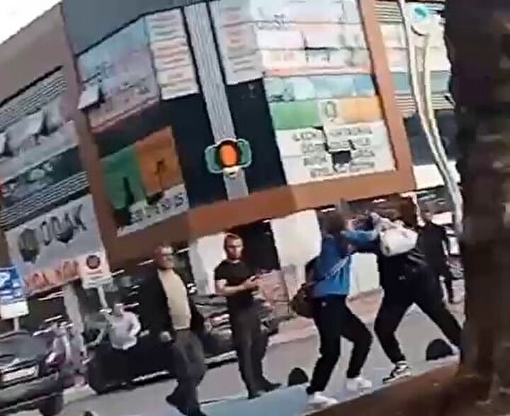 Kısa sürede büyüyerek kavgaya dönüşen olayda gençler saç saça baş başa birbirlerine girdi.
