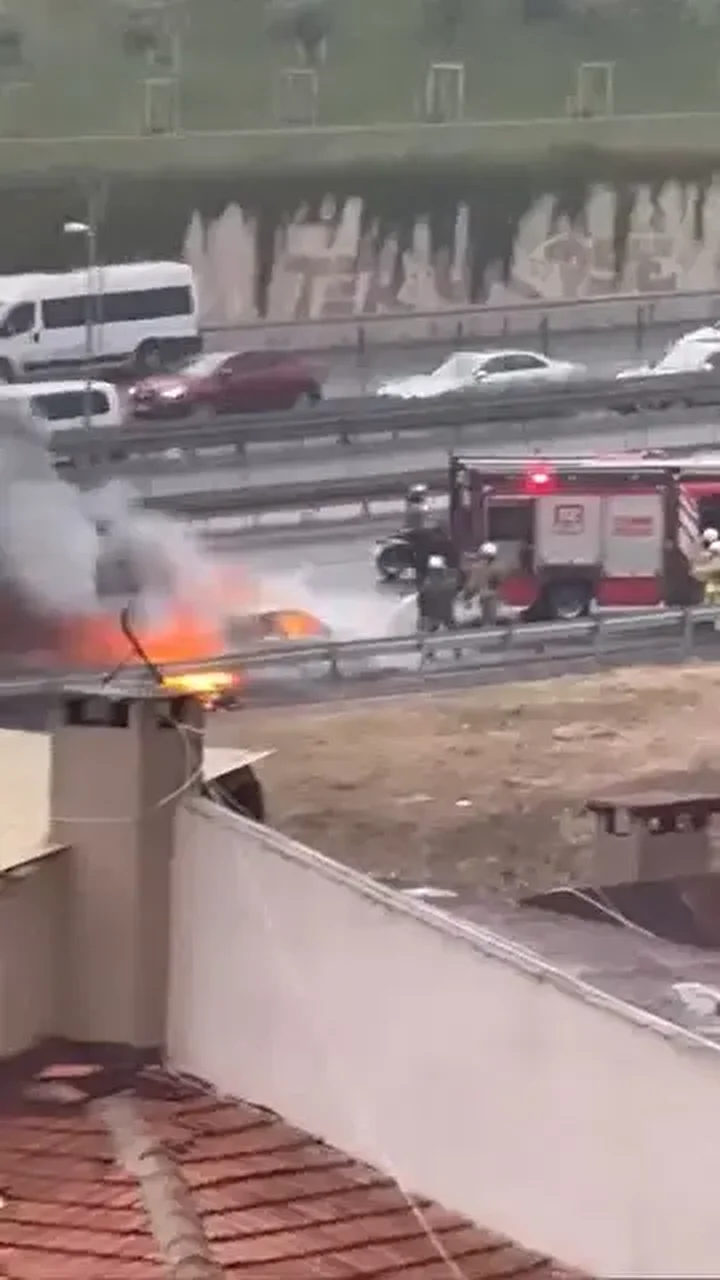 Alevler itfaiye ekiplerinin müdahalesiyle söndürüldü. Otomobilin alev alev yandığı anlar çevredekiler tarafından cep telefonu ile görüntülendi.