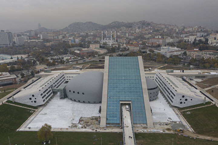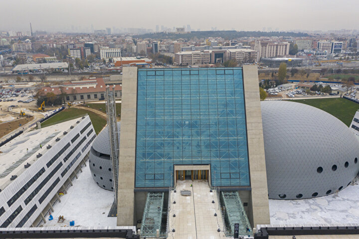 Cumhurbaşkanı Erdoğan tarafından yapılacak açılışa saatler kala binada son hazırlıklar sürüyor. Kovid-19 salgını nedeniyle yoğun önlemlerin alınacağı açılış programına sınırlı sayıda dinleyici HES koduyla kabul edilecek.