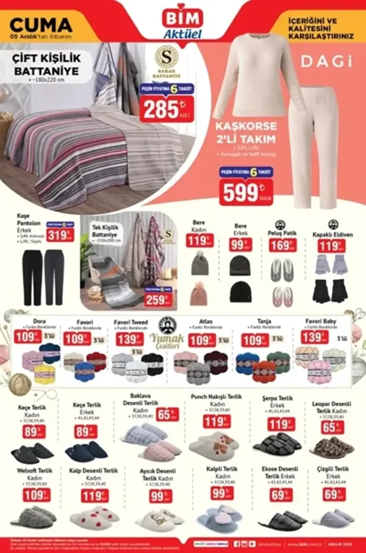 BİM 5 Aralık Cuma aktüel kataloğu satışa sunuldu. Aralık ayı içerisindeki ilk aktüel kataloglar BİM mağazalarında bu hafta satışa çıktı. 2 Aralık Salı kataloğunun ardından 3 Aralık tarihinde Eve Teslim kataloğu raflarda yerini aldı. Son olarak 5 Aralık Cuma BİM aktüel kataloğunda yer alan ürünler raflarda satışa sunuldu. Her hafta farklı ürün seçeneklerinin yer aldığı BİM kataloğunda haftanın en dikkat çekici kataloğu bugün BİM mağazalarında satışta!