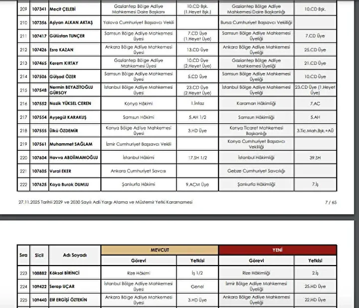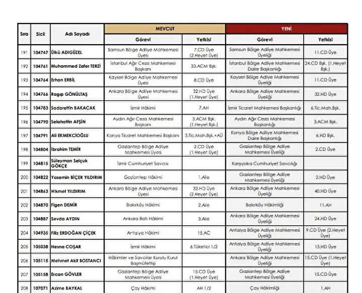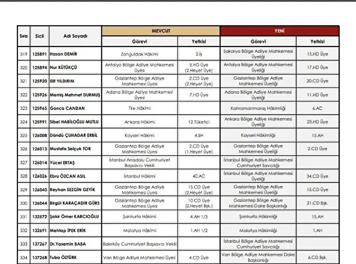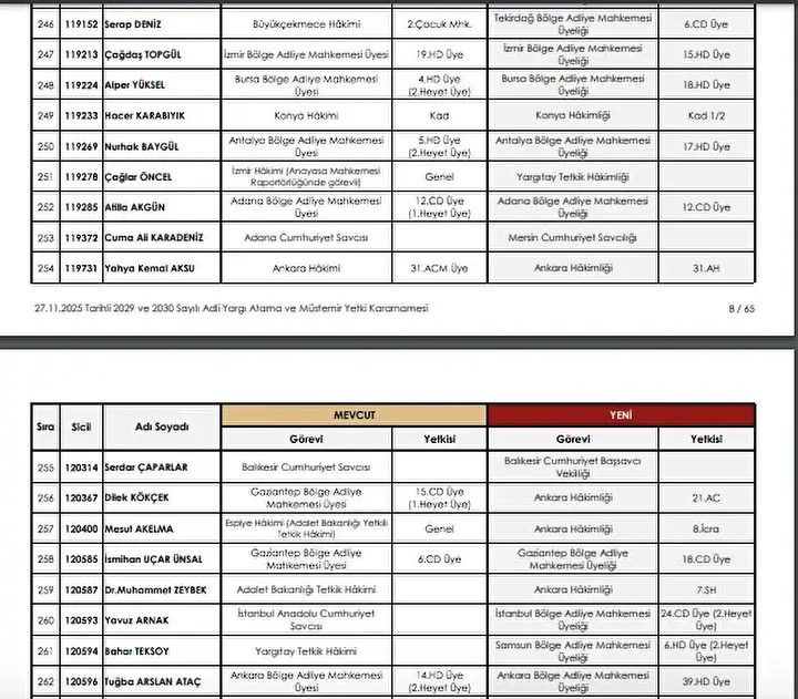 Hakimler ve Savcılar Kurulu (HSK) Kararnamesi Resmi Gazete atama kararları