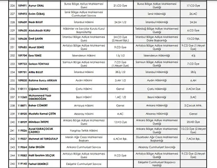 HSK, adli yargıda toplam 621 hâkim ve savcının atamasını gerçekleştirdi. Kararname kapsamında üç önemli başsavcılık pozisyonunda değişikliğe gidildi. Bursa Cumhuriyet Başsavcısı Ramazan Solmaz, Yargıtay Cumhuriyet Savcılığına atandı. Diyarbakır Cumhuriyet Başsavcısı Mustafa Çelenk, Bursa Cumhuriyet Başsavcılığına getirildi. Yargıtay Cumhuriyet Savcısı Erdal Kuruçay ise Diyarbakır Cumhuriyet Başsavcısı oldu.
