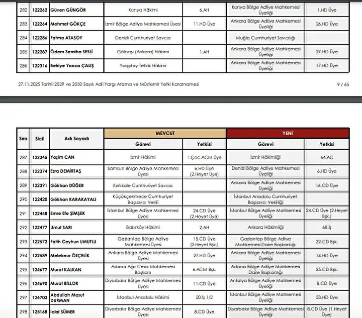Hakimler ve Savcılar Kurulu (HSK) Kararnamesi Resmi Gazete atama kararları yayımlandı. HSK tarihinde ilk kez Atama Kararnamesi ile Yetki Kararnamesi, tek bir metinde birleştirilerek yayımlandı. Kararname, hem adli hem de idari yargıda büyük çaplı bir değişiklikler yapıldı. Adli ve İdari Yargı 2025 Yılı Mazeret ve Müstemir Yetki Kararnameleri kapsamında 621 hakim ve cumhuriyet savcısının atamasını gerçekleştirdiklerini ve 1840 müstemir yetki düzenlemesi gerçekleştirildi. İşte görev yeri değişen hakim ve savcılar.