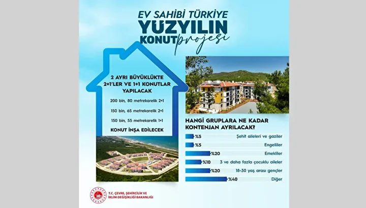 Çevre, Şehircilik ve İklim Değişikliği Bakanı Murat Kurum, 500 bin sosyal konutun 81 ile dağılımını harita ile gösterdi ve şu ifadeleri kullandı; "86 milyon nüfusumuza göre 81 ilde 500 bin sosyal konutun dağılımını yaptık. Gelen talepleri ve genel ihtiyaçları dinledik değerlendirdik. İstanbul'da 100 bin konut yapıyoruz. Buna ilave yine İstanbul'da 15 bin kiralık konut yapıyoruz. Ankara, 30823 sayısıyla en fazla konut yaptığımız ikinci ilimiz olacak.