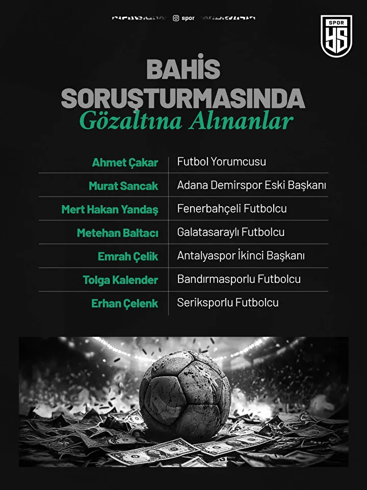 Bahis soruşturmasında gözaltına alınan ve basına yansıyan isimler.