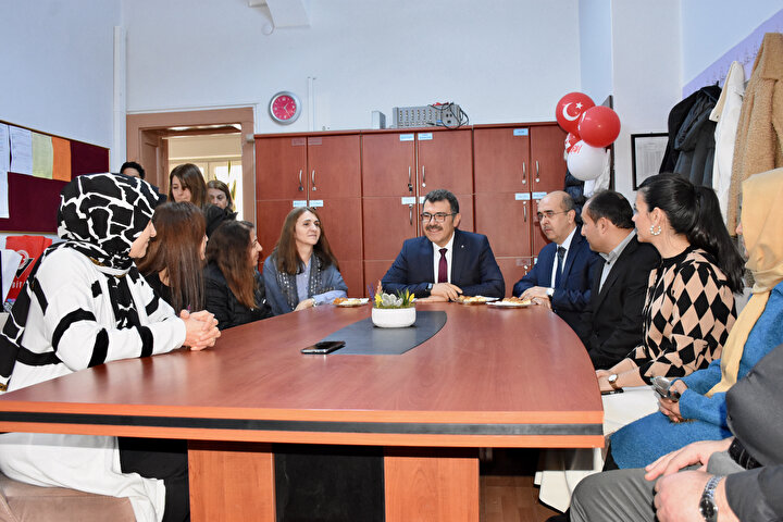 Öğrencilere TÜBİTAK'ın "Bilim Çocuk" dergisini hediye eden Mandal, bir araya geldiği öğretmenlerin gününü kutladı.