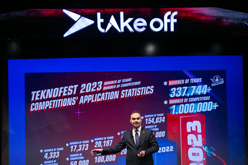Geçtiğimiz yıllarda Teknofest’in bir yan etkinliği olarak gerçekleşen Take Off, bu yıl zirveye 200’den fazla teknoloji girişimi katıldı ve bunların 79’u Teknofest’lerden doğan girişimler. Her zaman vurguluyoruz; Teknofest’ler Türkiye’nin girişim fabrikasına dönüşüyor. Teknofest’lerde çok erken yaşlarda girişimcilik projelerinin tohumlarını eken girişimcilerimiz şimdi Take Off vesilesiyle yatırımcılar ve kurumsal iş liderleriyle buluşuyor ve girişimlerini büyütme imkanına kavuşuyor. Biz Türkiye’de 2030 yılına geldiğimizde 100 bin tekno girişimin kurulması ve bunun en az 100’ünün Turkcorn yani milyar dolarları aşan teknoloji girişimleri olmasını hedefliyoruz. İnşallah tüm bu çalışmalar, bizi hedeflerimize adım adım yaklaştıracak" dedi. Kacır alanda bulunan stantları ziyaret ettikten sonra kongre merkezinden ayrıldı.