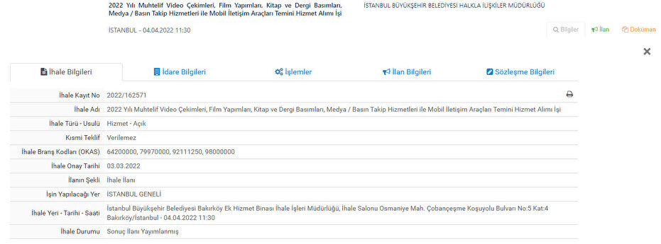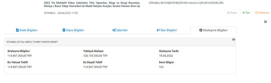 CHP'li İstanbul Büyükşehir Belediyesi'nin yatırımların tanıtımı, kitap ve dergilerin basımı için 114 milyon TL'ye ihale yaptığı ortaya çıktı. Metrobüs alabilmek, yol yapabilmek için hükümetten ek bütçe talep eden İBB Başkanı Ekrem İmamoğlu'nun film için ayırdığı bütçe eleştirilere neden oldu.