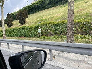 İstanbul'da bugün, İBB'ye ait olduğu görülen büyük bir aracın, yolu kapatarak otoyol kenarında durmasının ardından içinden yalnızca bir işçinin indiği görüldü. Elinde makas bulunan İBB işçisi, daha sonra yol kenarında bulunan yeşil alanların bakımını tek başına yaptı.