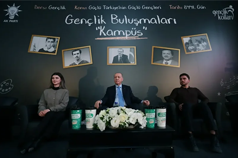 Cumhurbaşkanı Erdoğan, "Gençlik buluşmaları" programını Türk siyasetine kendilerinin kazandırdıkları, kendileriyle sembolleşen özgün çalışmalardan biri olduğunu belirterek, "Şimdiye kadar Konya'dan Bursa'ya, Samsun'dan Şanlıurfa'ya, Mardin'den Muğla'ya birçok ilimizde gençlerimizle bir araya geldik, hasbihal ettik. Farklı konularda ufuk turu yaptık. Bu buluşmaların şahsen benim de ufkumu açtığını ifade etmek isterim. Gençlerin kalbinde yer edinmeye, gençlerle yoldaşlık etmeye, işte bugün burada olduğu gibi gençlerle ruberu sohbet etmeye siyaset yolculuğumda hep özel önem veriyorum." diye konuştu.