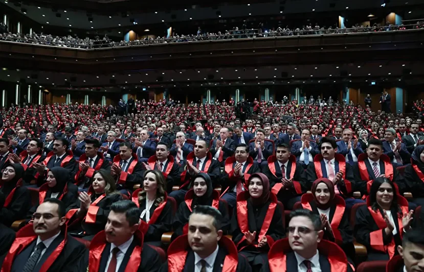 Cumhurbaşkanı Recep Tayyip Erdoğan, Cumhurbaşkanlığı Külliyesi’nde düzenlenen hâkim ve savcı kura töreninde hem yargı camiasına hem de siyasi tartışmalara yön veren önemli mesajlar verdi. Adalet teşkilatının devletin omurgası olduğuna dikkat çeken Cumhurbaşkanı, Türkiye’nin demokrasi ve özgürlük alanında kat ettiği mesafeyi hatırlatarak, özellikle kadın yargı mensuplarına yönelik hazımsız tepkilere sert ifadelerle karşılık verdi. Yargı mensuplarının sükûnetinin asla zafiyet olarak görülmemesi gerektiğini belirten Erdoğan, son dönemde yargı üzerinde kurulan baskı ve tehdit diline de tepki gösterdi.
