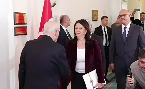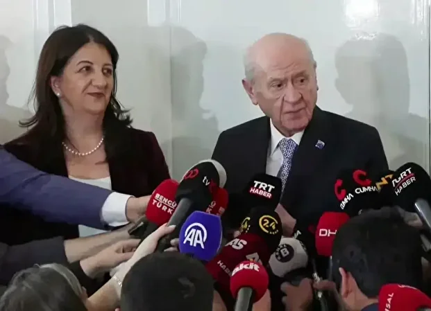 DEM Parti’nin İmralı heyetinde yer alan Pervin Buldan, Mithat Sancar ile Faik Özgür Erol, TBMM’de MHP Genel Başkanı Devlet Bahçeli’yle bir araya geldi. Bahçeli konuklarını bizzat kapıda karşıladı. Pervin Buldan görüşme sonrası "Yeni bir aşama üzerinde ilerleme düşünüyoruz. İkinci aşamaya geçtiğimizi söylemek gerekiyor. Yasal bir düzenlemeye ihtiyaç var." açıklamasında bulundu.
