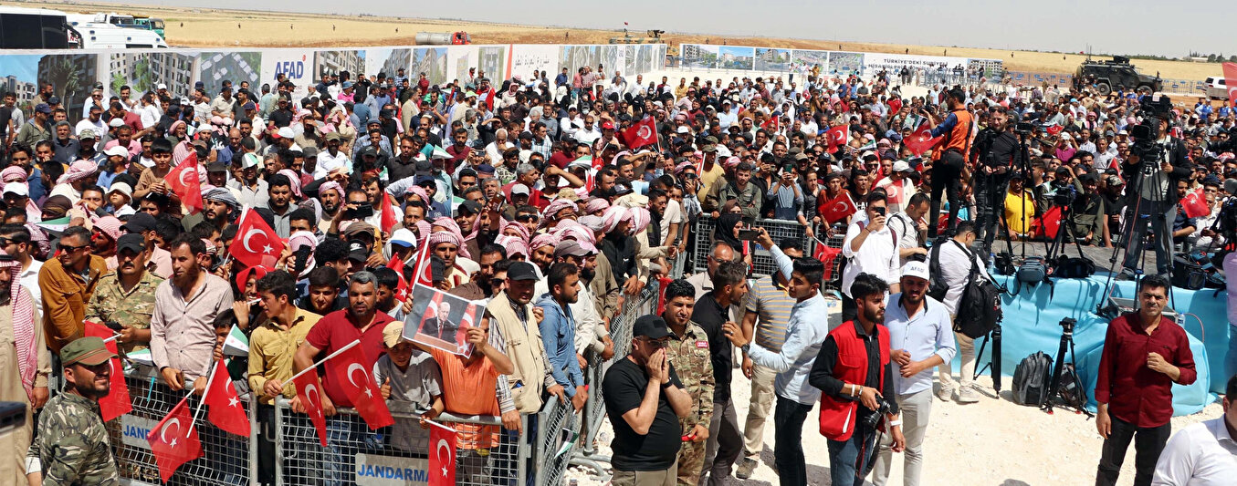 "Türkiye'de bu onurlu, güvenli ve gönüllülük geri dönüş için yaklaşık 12 ayrı ilde 12 ayrı ofis oluşturulmuştur. Türkiye'de bulunan Suriyeli kardeşlerimizin sivil toplum kuruluşlarıyla, kanaat önderleriyle tam bir yıldır bunun çalışması yapılmaktadır. Kardeşlerimizin sayesinde burada yeni hayatlar yeşerecektir. Bu bölgeler savaşın, karmaşıklığın, kaosun değil; bu bölgeler ümidin, geleceğin bölgesi olacaktır ve Allah izin verirse de çok çabuk bir zaman dilimi içerisinde yaklaşık 2,5- 3 yıllık bir zaman dilimi içerisinde 240 bin konut ve 1 milyon insan bu bölgede yerleşime başlayacak, hayatına devam edecek, üretimini sağlayacak, eğitimini sağlayacak ve bu bölge bölgemizin en önemli cazibe merkezlerinden birisi haline gelecektir. Çok paranız olabilir ama vicdanınız, kalbiniz ve kardeşliğiniz olmayabilir. Katar'ın yaptığı bu hamle hem vicdan hem kalp hem de kardeşliğin bütün dünyaya haykırılmasıdır. Dünyada yeni bir dönem başlamaktadır. Mağdurlar ve mazlumlar yalnız değildir."