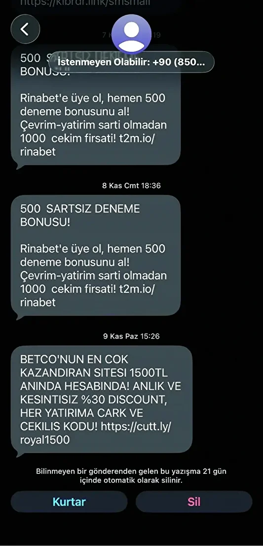 Her gün telefonuna onlarca bahis mesajı geldiğini söyleyen Ali B. geçtiğimiz günlerde bir bahis sitesi tarafından arandığını belirterek, “Bahis sitesine üye olmam için arayan kişi bir kadındı. Benim, T.C. kimlik numaram başta olmak üzere tüm kişisel bilgilerim ev adresime kadar her detaya hakimdi. Bu bilgileri nereden aldığını sorduğumda bir liste verildiğini ve o listeye göre arama yaptığını söyledi” dedi. Çağrı merkezi gibi arama yapıldığını söyleyen Ali B. “Bir miktar bonus verilmesi karşılığında bahis sistemine girmem için telkinlerde bulunan bu kadın 3 arkadaşımı da sisteme dahil edersem, daha fazla bonus kazanabileceğimi söyledi. Bazı spor kulüplerine sponsor oldukları için güvenebileceğimi, para yatırırsam bunu mutlaka nakde çevirebileceğimi anlattı” ifadelerini kullandı.
