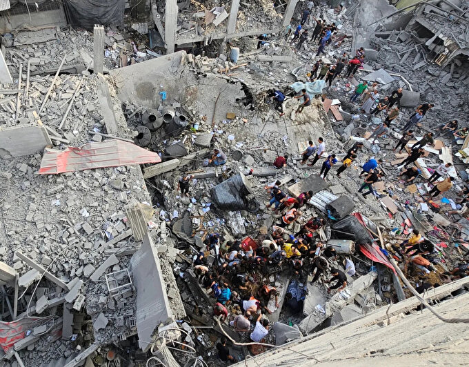 Выжившие после бомбежек палестинцы роются под завалами домов в надежде найти еду.