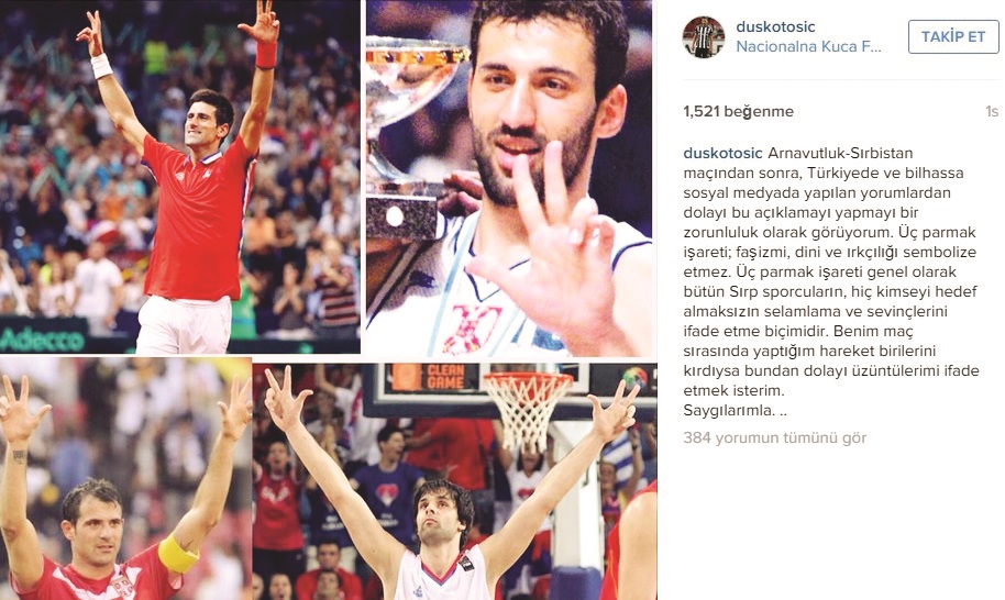 Fenerbahçe'de oynayan Markovic, "Kosova Sırbistan'ındır" mesajıyla şimşekleri üzerine çekerken; Beşiktaş'ta oynayan Dusko Tosic ise takımının 2. golünün ardından Sırp radikal milliyetçilerinin işaretini yapması tepkiye neden oldu.