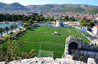 Hırvat kıyısındaki Trogir kasabasındaki stadyum UNESCO Dünya Mirası Listesi'nde yer alan bir kalenin bahçesinde bulunuyor.