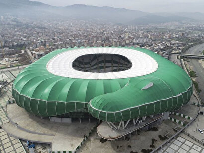 TFF 1. Lig'de mücadele eden Bursaspor'un iç saha maçlarını oynadığı stadyumun çatısı kulübün simgesi olan timsah şeklinde yapıldı.
