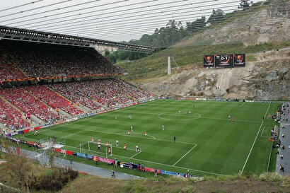 Portekiz’in Braga şehrinde bir tepenin yanında inşa edilen stadyumun bir kale arkasında kaya duvarları bulunuyor.