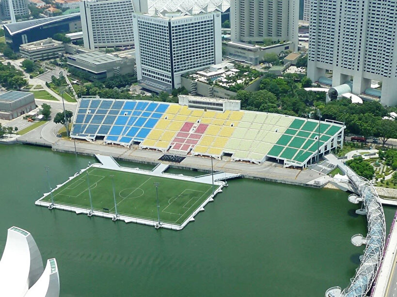 Singapur'da suyun üzerinde yüzen bir platform şeklinde yapılan Marina Bay Stadyumu, dünyanın en büyük yüzer futbol stadıdır.