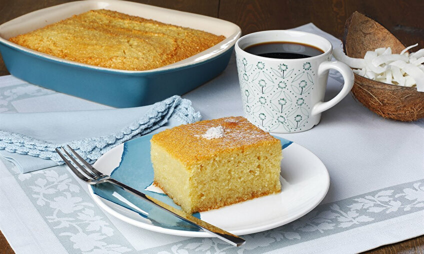 15 dakikada hazırlanan üzümlü revani 45 dakikada pişer.