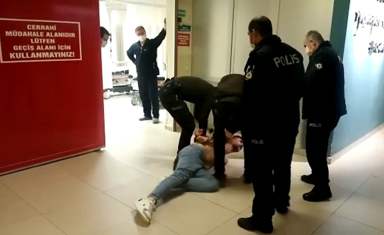 Hastanenin cam kapısını yumruklayarak kıran Murat A. polis ekiplerinin müdahalesiyle polis aracına bindirildi. Polis merkezine götürülen Murat A.’ya kamu malına zarar verme suçundan işlem başlatıldı.